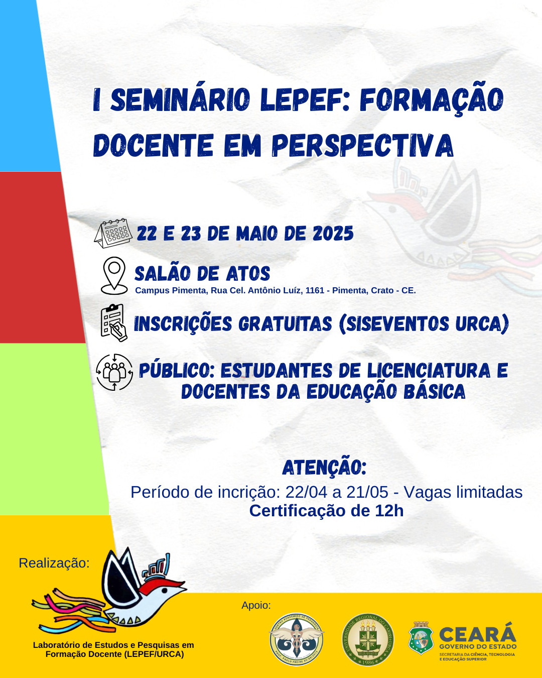 Inscições no evento, em minicursos, oficinas, palestras totalmente on-line.